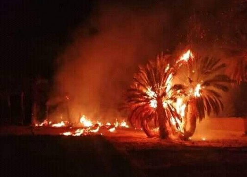 ووفق مصادر محلية، فقد تسبب الحريق الذي انتقل بسرعة إلى عدد من الأشجار المجاورة بسبب عامل الرياح، في خسائر مادية جسيمة في الواحة.