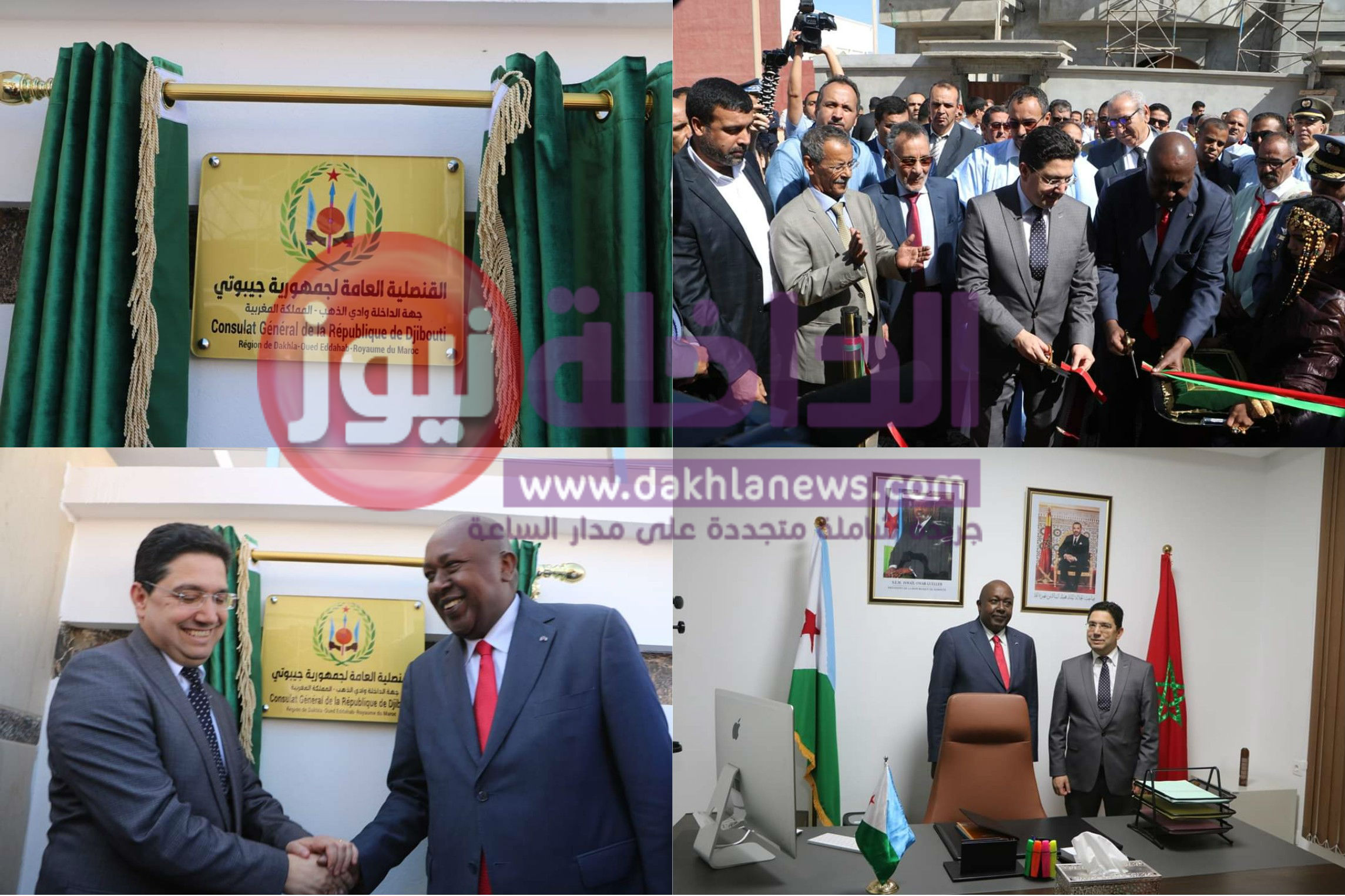 أشرف وزير الشؤون الخارجية والتعاون الإفريقي والمغاربة المقيمين بالخارج، السيد ” ناصر بوريطة”، رفقة سفير جمهورية جيبوتي بالمملكة السيد “إبراهيم بليه دوعله”، ظهر اليوم الجمعة، على إفتتاح قنصلية عامة لجمهورية جيبوتي بمدينة الداخلة.