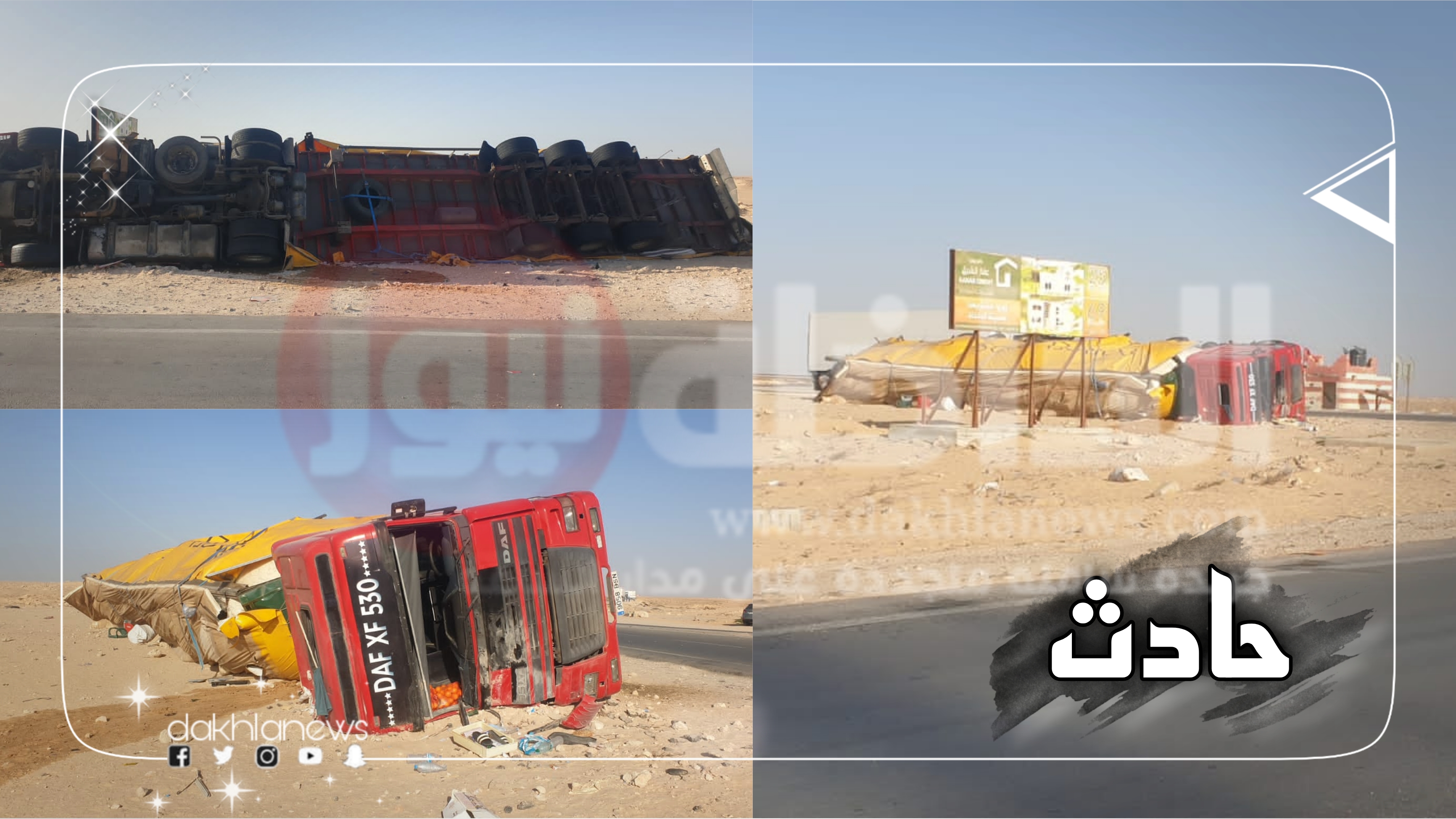 تعرضت شاحنة للنقل الدولي للبضائع، فجر اليوم الأربعاء 22 دجنبر الجاري، للإنقلاب على المستوى الطريقة الوطنية رقم 1 شمالي مدينة الداخلة.