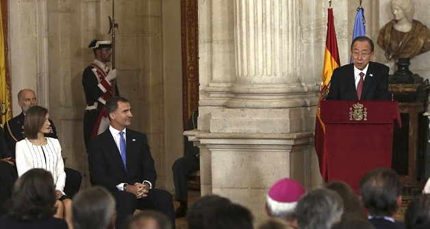 وياتي تصريح بان كيمون على هامش لقاءه بمسؤولين اسبان للاحتفال بالذكرى الستين لانضمام اسبانيا الى الأمم المتحدة بمشاركة كل من الملك فيلبي السادس ورئيس الحكومة ماريانو راخوي ومسؤولين آخرين.