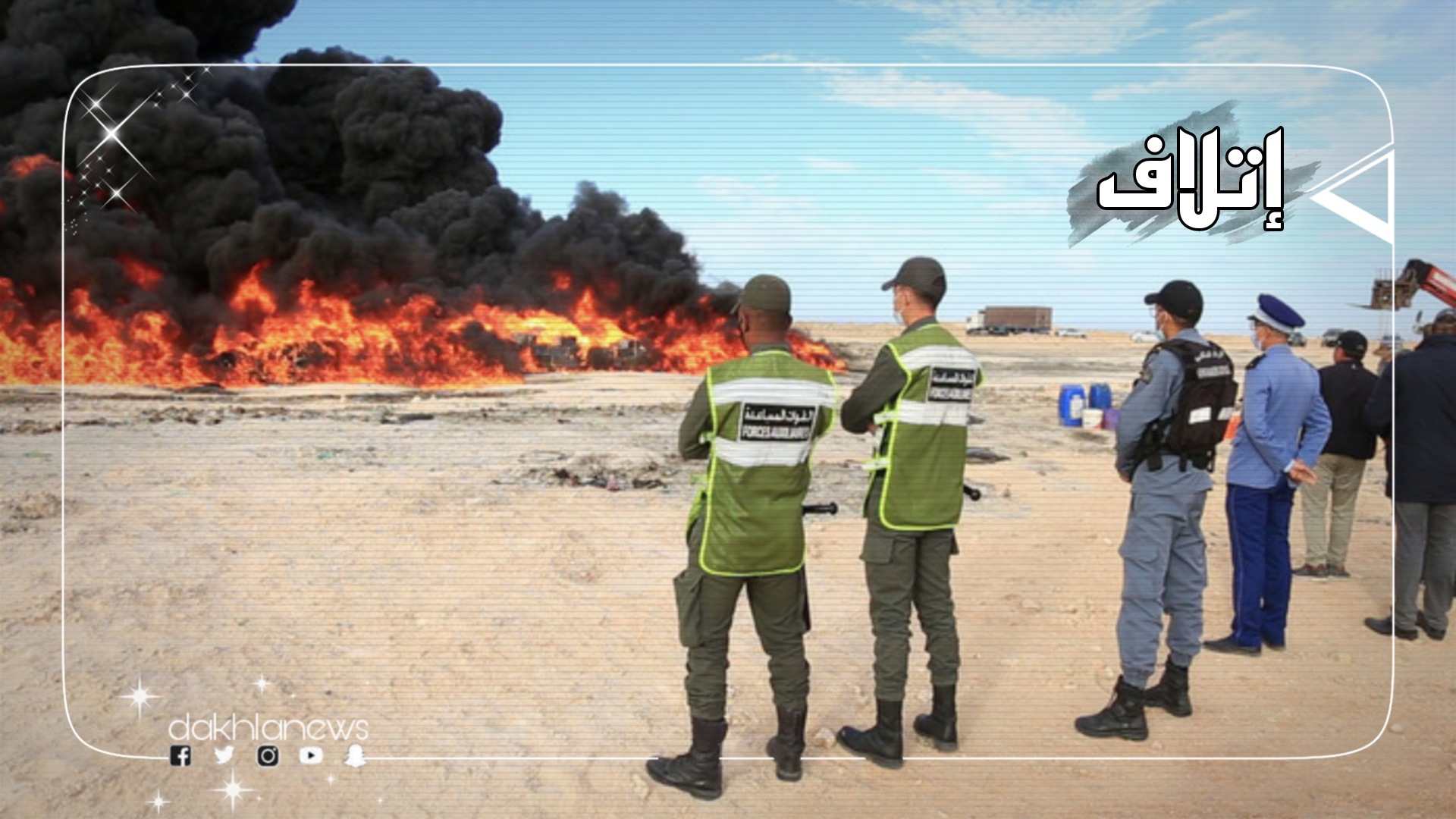 جرى، اليوم السبت بضواحي الداخلة، حرق وإتلاف كمية كبيرة من المخدرات، بينها ستة أطنان و503 كيلوغرامات من مخدر الشيرا، ومواد محظورة ومهربة تقدر قيمتها بأزيد من 34.90 مليون درهم.