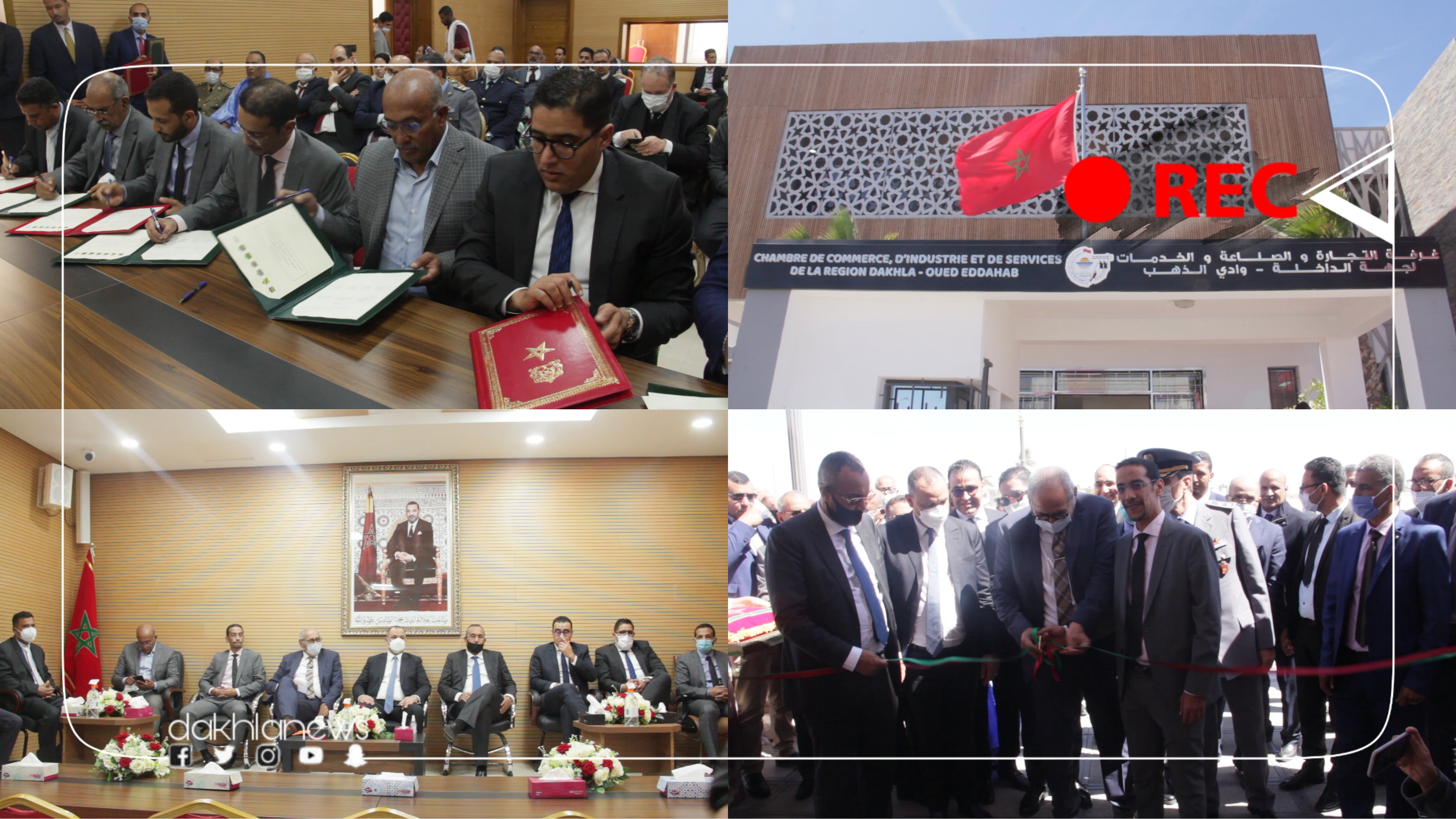 أشرف وزير الصناعة والتجارة السيد (رياض مزور)، بمعية والي جهة الداخلة وادي الذهب (لامين بنعمر)، ورئيس غرفة التجارة والصناعة (بوسيف جمال)، ورئيس المجلس الجهوي للداخلة (الخطاط ينجا)، ورؤساء المجالس المنتخبة، وعدد من الفعاليات المدنية، صباح الثلاثاء 08 مارس الجاري، على تدشين المقر الجديد لغرفة الصناعة والتجارة والخدمات بجهة الداخلة وادي الذهب.