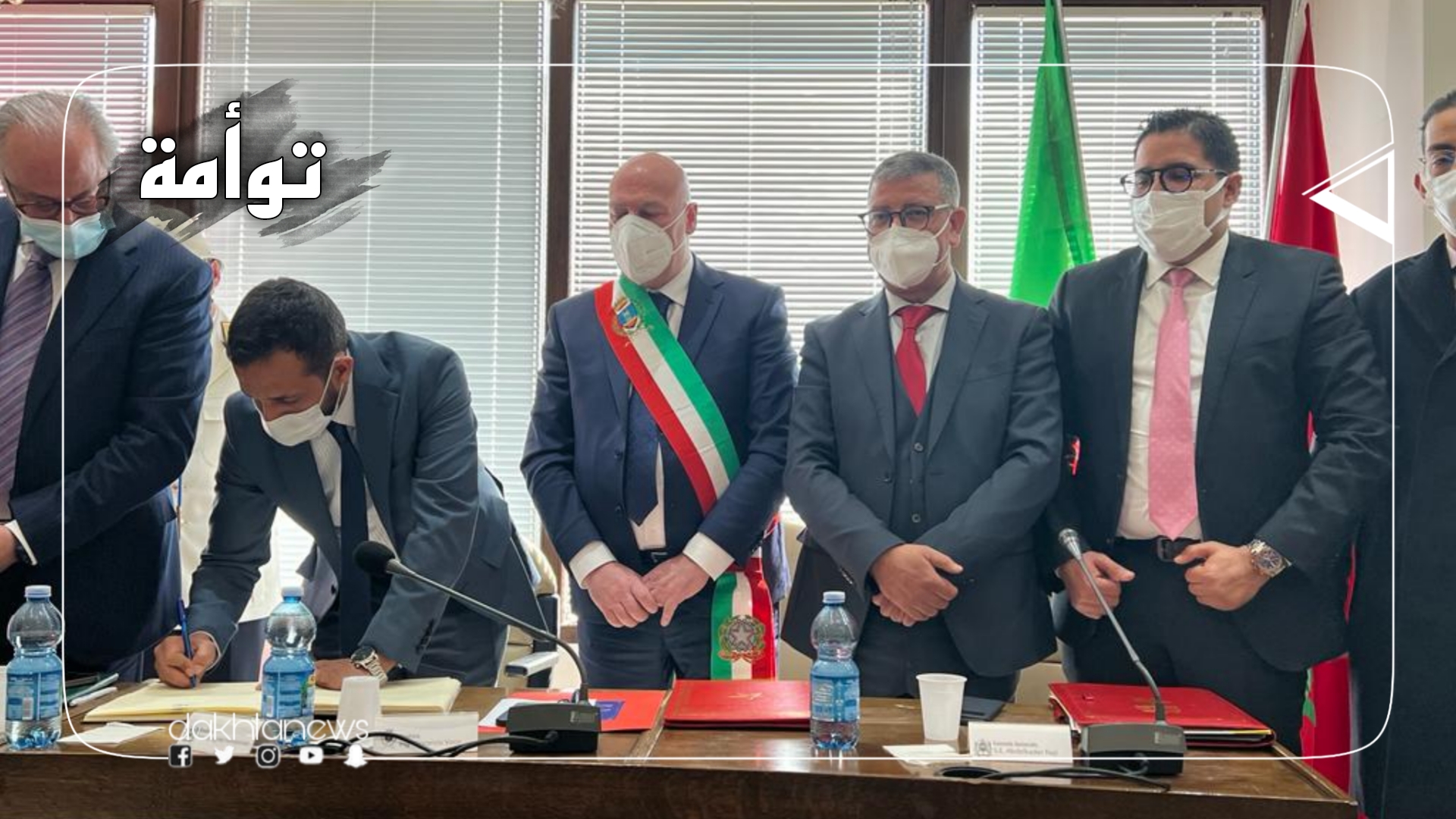 تم اليوم السبت، التوقيع على مشروع اتفاقية توأمة، بين مدينة الداخلة ومدينة (كروتوني) الإيطالية، وذلك بحضور رئيس مجلس جماعة الداخلة الحضرية (الراغب حرمة الله)، وعمدة مدينة (كروتوني) السيد (فيشينسو فوشي).