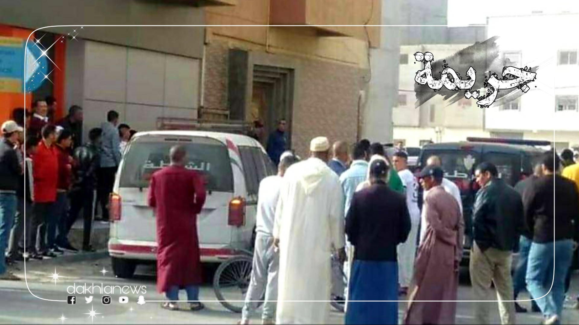 شهد بعد ظهر اليوم، حي القدس (الرحمة)، بمدينة الداخلة، جريمة قتل راح ضحيتها شخص في عقده الثالث، تلقى طعنة سكين لفظ على إثرها أنفاسه الأخيرة.