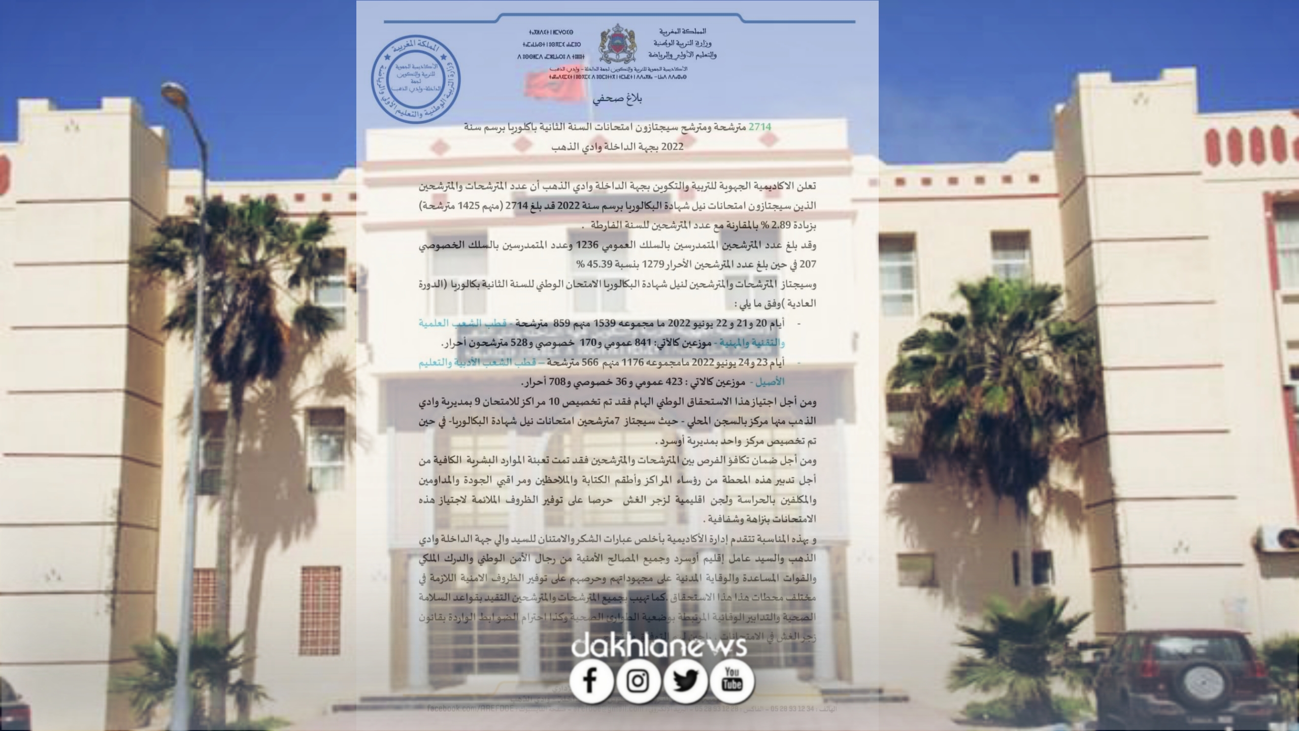 أكاديمية جهة الداخلة وادي الذهب تتصدر نتائج امتحانات البكالوريا وطنيا بـ89 في المئة