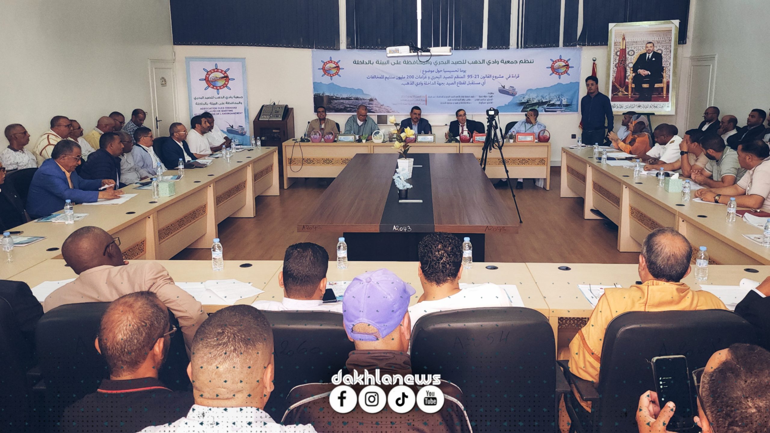 اللقاء ترأسه “امبارك حمية” رئيس الجمعية، وحضره الدكتور “عز الدين الماحي” القاضي برئاسة النيابة العامة بالرباط، والدكتور “عمر أزوكار” محامي بالداخلة وباريس ومونتريال الكندية، وعدد كبير من التمثيليات المهنية والنقابية والبحارة وربابنة الصيد البحري.