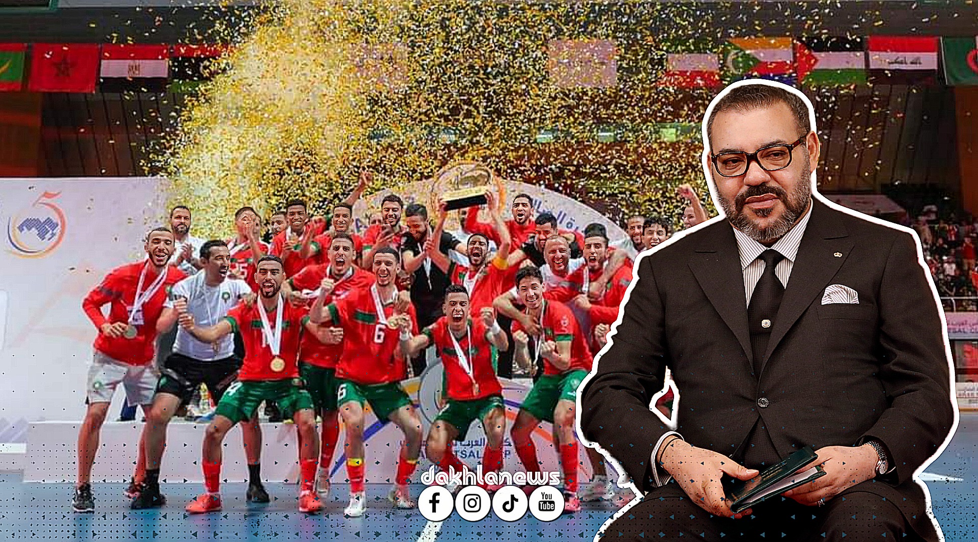 من جهته، بعث الملك محمد السادس ببرقية تهنئة إلى أعضاء المنتخب الوطني المغربي لكرة القدم داخل القاعة بمناسبة فوزه، اليوم الجمعة، بكأس العرب التي أقيمت بالمملكة العربية السعودية.