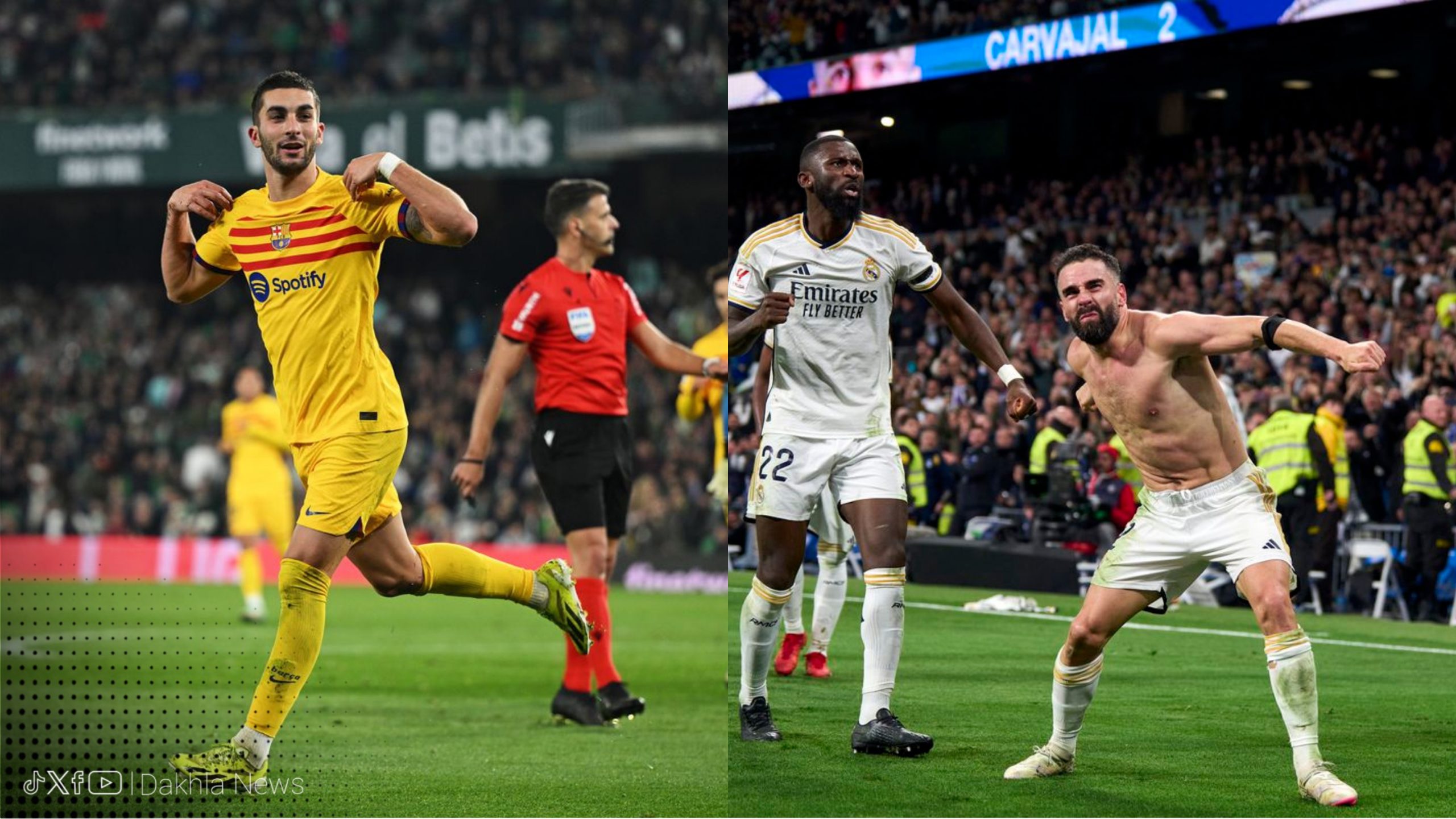 من جهته، فاز برشلونة على نظيره ريال بيتيس بأربعة أهداف مقابل هدفين، في المباراة التي جمعت بينهما مساء اليوم الأحد على ملعب الأخير في الجولة الواحدة والعشرين من الدوري الإسباني.