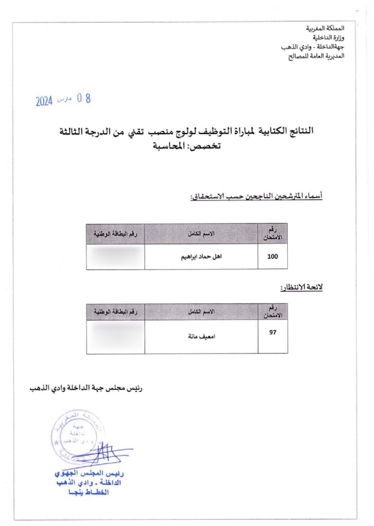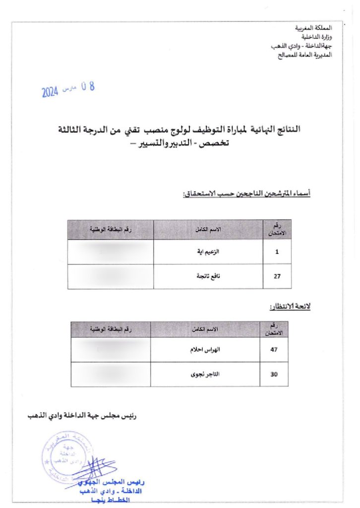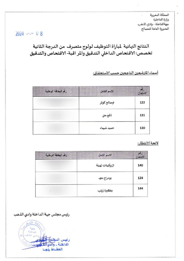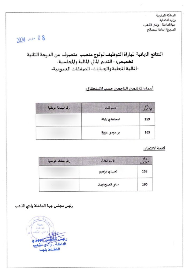 النتائج النهائية لمباراة التوظيف لولوج منصب متصرف من الدرجة الثانية