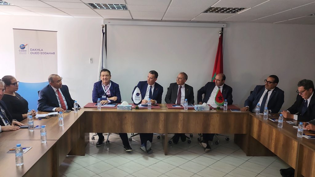 عقد الاتحاد العام لمقاولات المغرب بالداخلة، إجتماع هام يوم الجمعة الماضي، بحضور فعاليات إقتصادية ورؤساء أبناك ومستثمري كبار، وترأس الإجتماع ‘شكيب العلج’ رئيس الإتحاد العام لمقاولات المغرب، بمعية ‘محمد الزبدي’، رئيس الإتحاد العام لمقاولات المغرب بجهة الداخلة وادي الذهب.