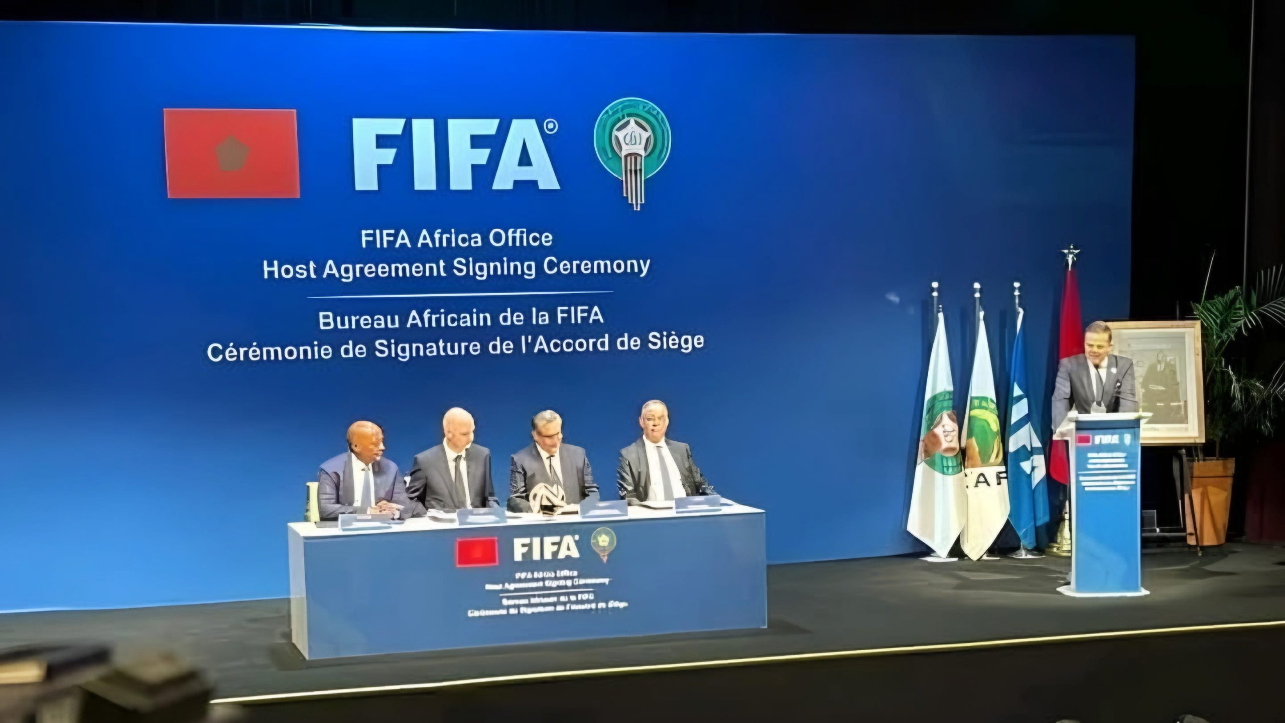 مراسم التوقيع حضرها كل من رئيس الحكومة المغربية عزيز أخنوش، ورئيس الاتحاد المغربي لكرة القدم فوزي لقجع، إلى جانب رئيس الفيفا جياني إنفانتينو، ورئيس الكونفدرالية الأفريقية لكرة القدم باتريس موتسيبي.