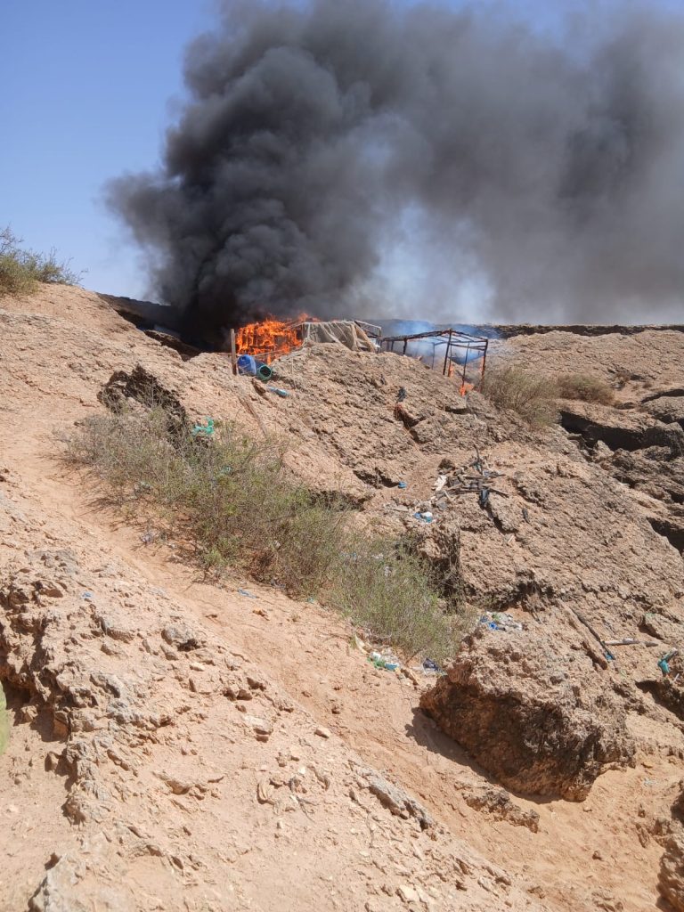 سلطات العرݣوب تهدم براكات وغراف يستعملها ممتهنو الإطارات المطاطية شمالي الداخلة